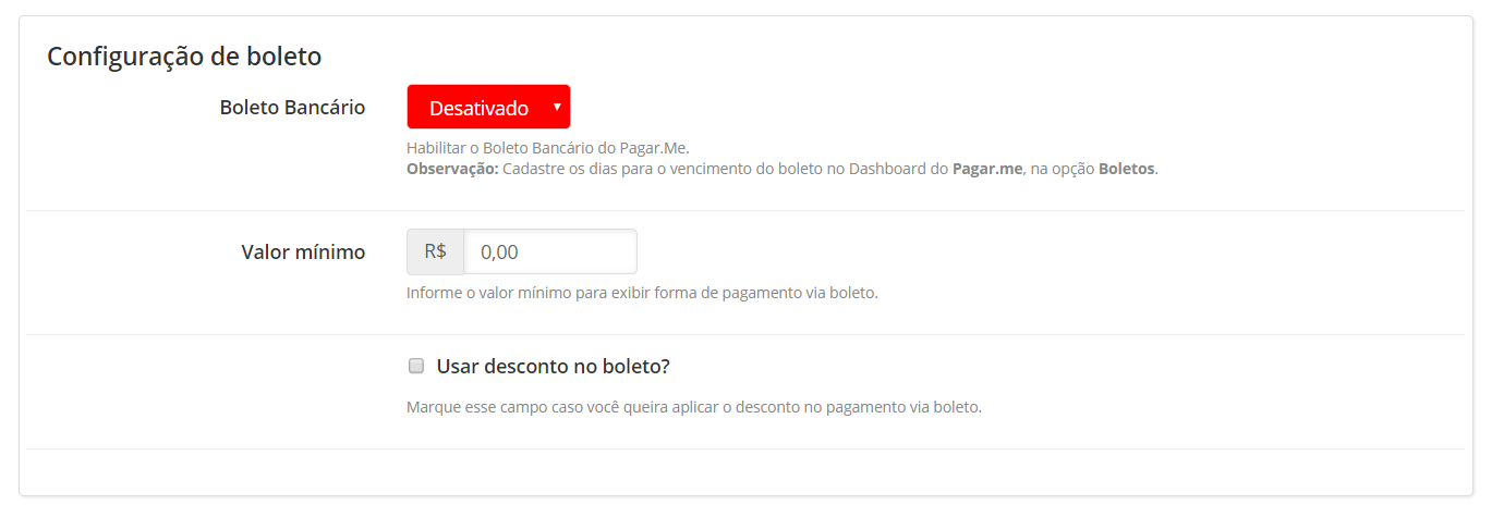 OBS: Para configurar a quantidade de dias para o vencimento do boleto para seu cliente terá que cadastrar essa informação diretamente no seu painel do Pagar.me.