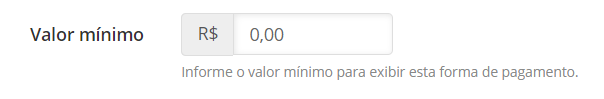 A seguir tem a opção de Valor mínimo que é um campo opcional e poderá estipular da maneira que melhor desejar, ou não informar nenhum tipo de valor mínimo.